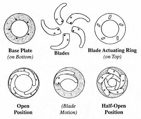 다른 것은, 일반적으로 카메라 구조물에서 볼 수 있는 조리개와 더욱 가까운 조리개의 구조입니다.